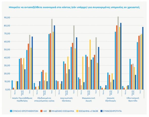 Ένας στους τρεις ασθενείς αναφέρει πως δεν μπορεί να ανταπεξέλθει στο κόστος ιατροφαρμακευτικών υπηρεσιών όπως για παράδειγμα διαγνωστικές εξετάσεις, φαρμακευτική αγωγή και οδοντιατρική φροντίδα.
